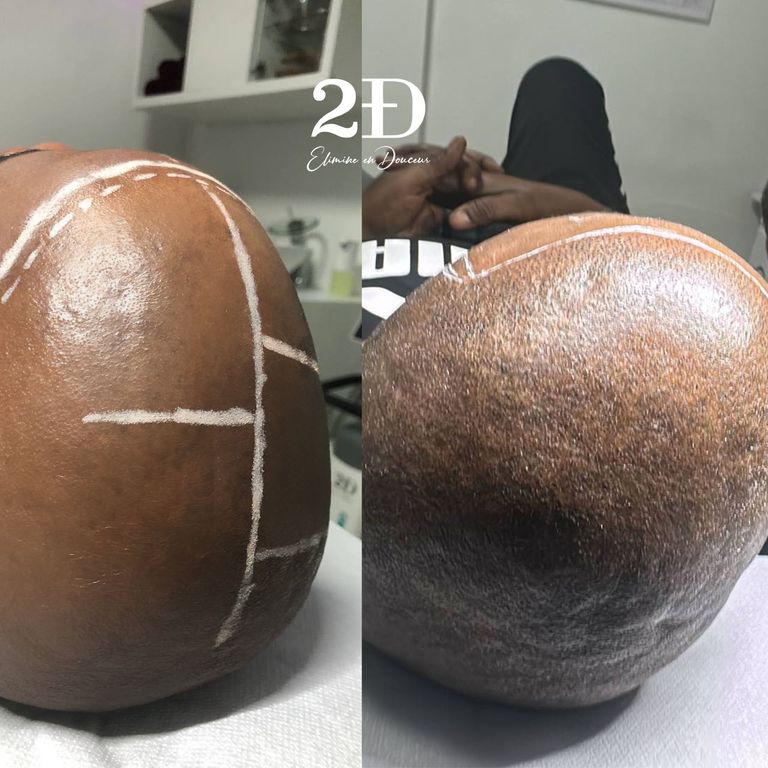 L’effet obtenu varie selon le besoin : certains préfèrent simuler la racine d’un cheveu tondu, tandis que d’autres optent pour un comblement général. Nous ajustons toujours la technique à votre souhait initial.